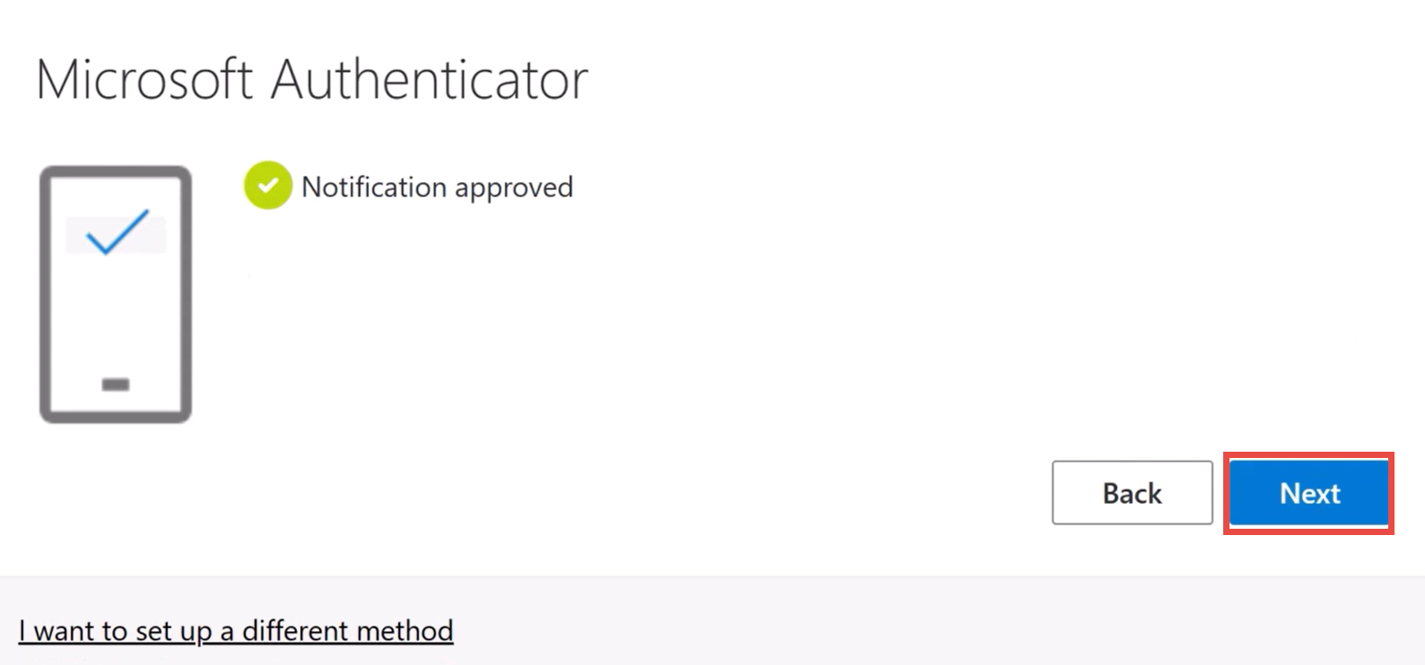 - Once you completed verifying your sign-in, you’re enrolled successfully in MFA. Click "Next" to complete setup.