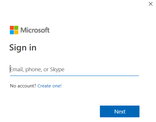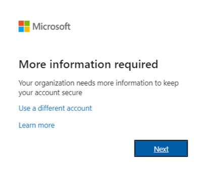 - To setup MFA, sign in with your work email in the prompt that pops-up. Then, click on "Next".
