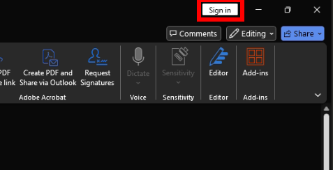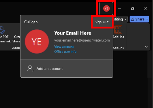 1. Click on your profile icon in the upper right-hand corner of Microsoft Word, and then click on Sign out.