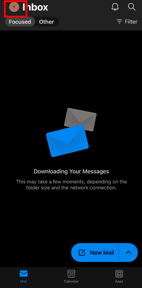 1. Tap on your profile icon in the upper left-hand corner of Outlook.