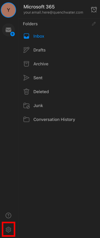 2. Tap on the gear icon on the bottom left-hand side of Outlook.