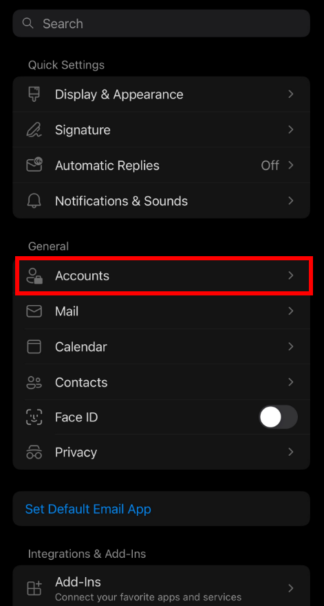 3. Tap on Accounts.