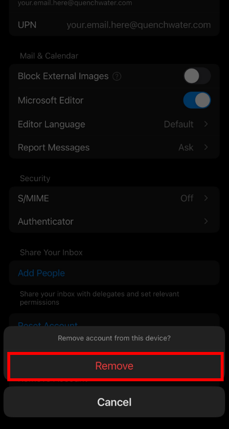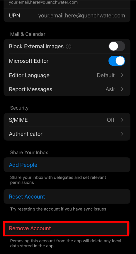 5. Tap on Remove Account.