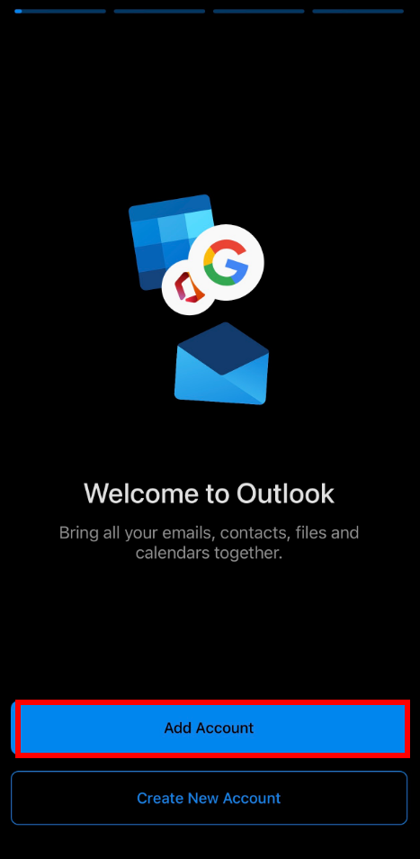 7. Re-open Outlook and tap on Add Account.