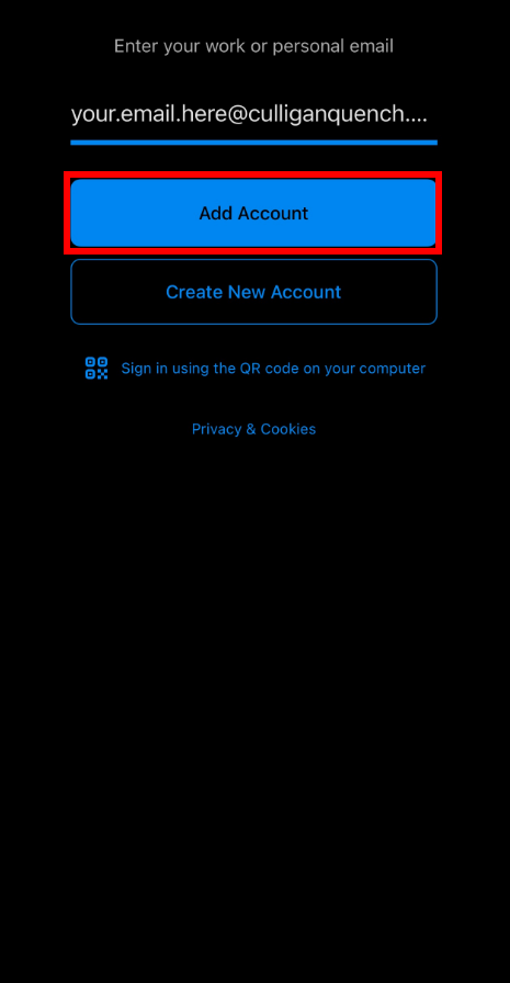 8. Enter in your email address using with the new culliganquench.com domain and tap on Add Account.